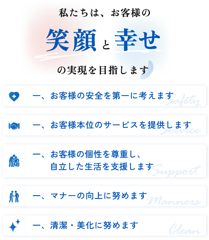 この理念の実現こそが、高齢者の自立の支援とお客様本位のサービスに繋がると信じているからです。