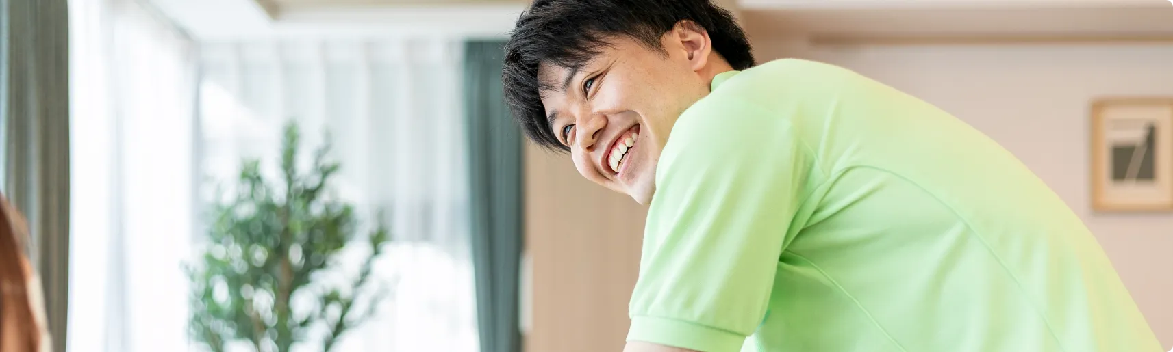 日々接していくうちに、お客様のいいところ、可愛らしいところが見つかるのが介護の醍醐味だと思っています。あまりホームの外に出る機会がないお客様も多いので、いかにホームの中で楽しく過ごしていただけるかをいつも考えています。