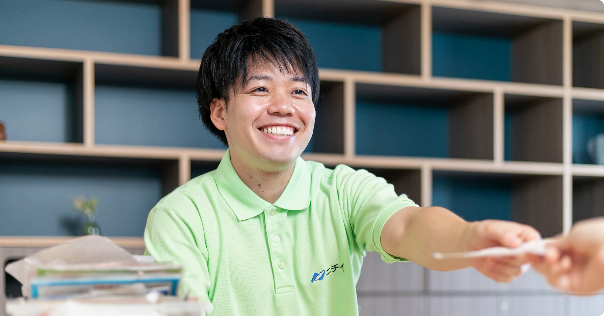 大学は理系で介護の知識はなかったが、OJT研修をはじめ研修制度で着実に成長。入社前から描いていたキャリアビジョンに沿って歩んでいる。