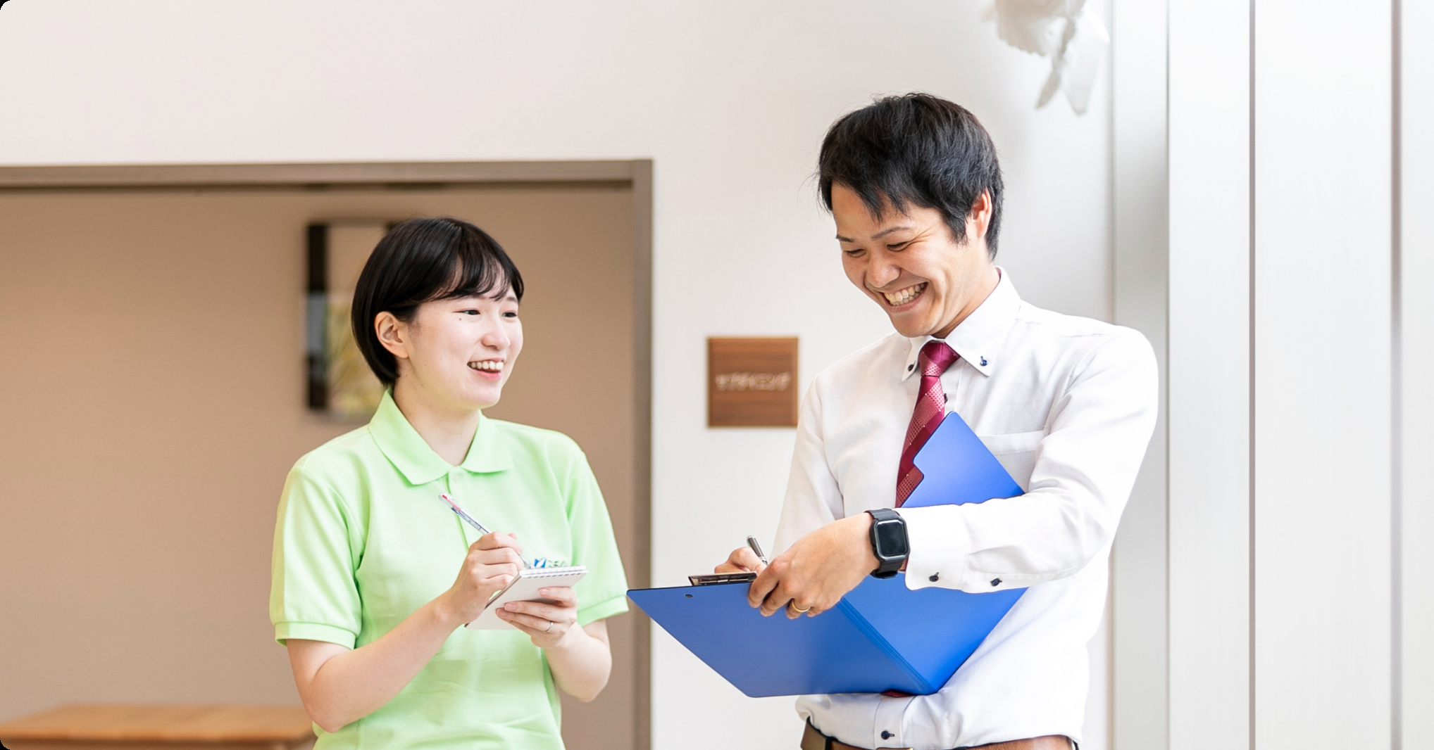 いろいろなホームを見てきて、ホーム長とスタッフとのコミュニケーションが円滑なホームは、お客様やご家族の満足度が高いように感じています。お客様を支えるのはスタッフですから、ちょっとした言葉や顔色など、スタッフの動向には特に目を配るようにしています。スタッフとのコミュニケーションが取りやすくなるように、ホームの動線を変更したこともありました。