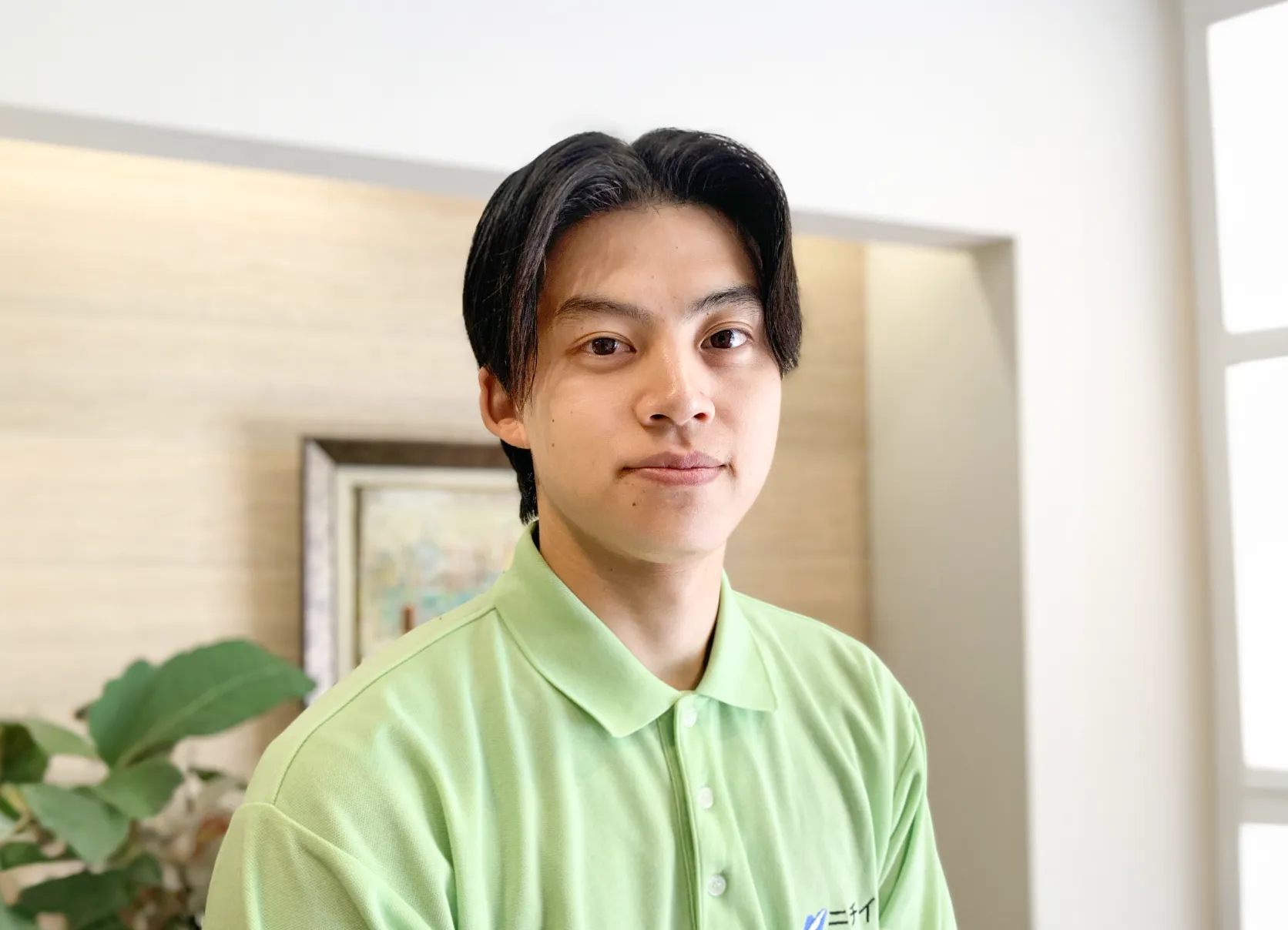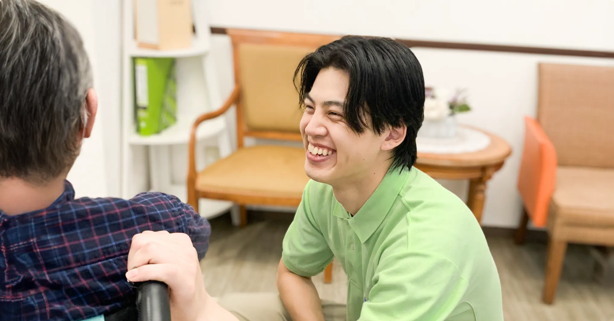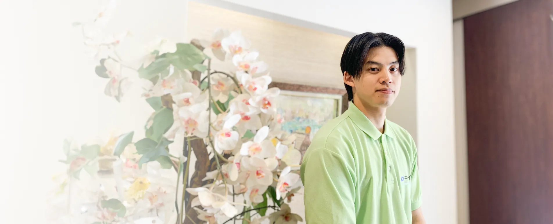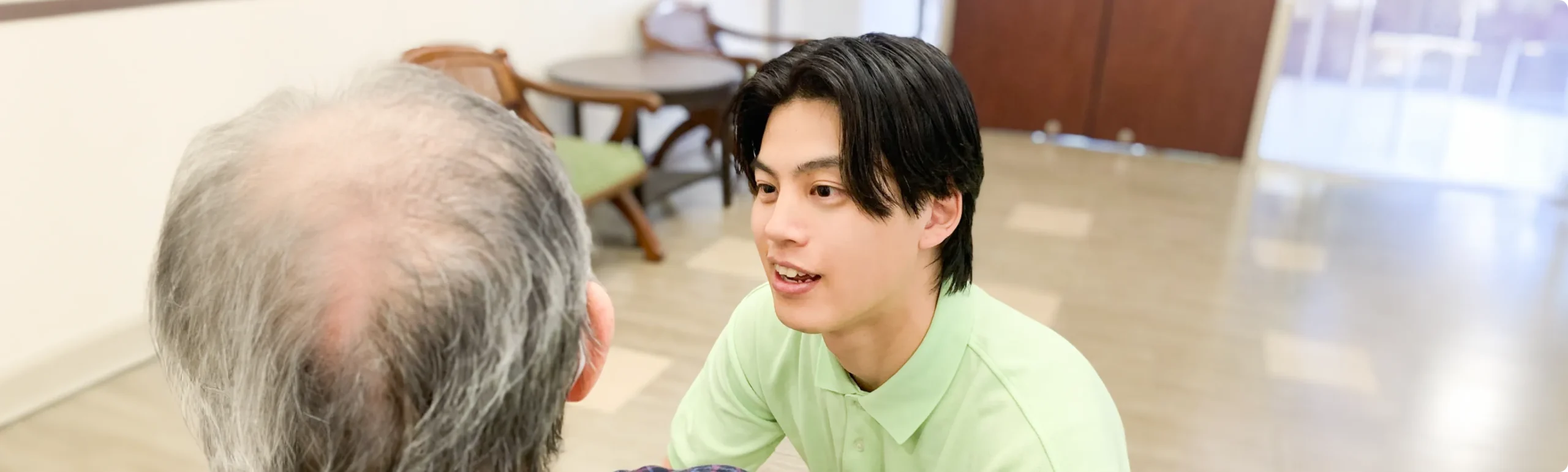 入社したてで不安だったことは、身体障がいのお客様の更衣や入浴、排泄介助です。日々お客様と接していくことでお客様の状態も少しずつ分かってきました。お客様と親身に接していくことが大切だと僕は思います。